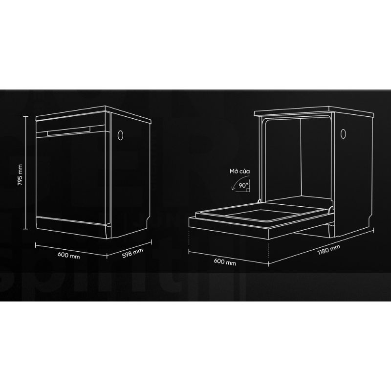 - Chiều sâu máy khi mở cửa: 1130 mm